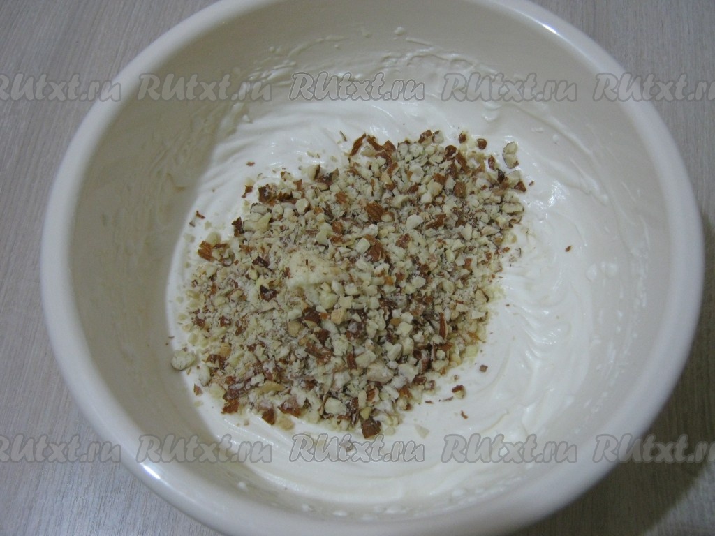 Займёмся приготовлением крема. Вишню разморозить и слить лишнюю жидкость. Орехи измельчить.