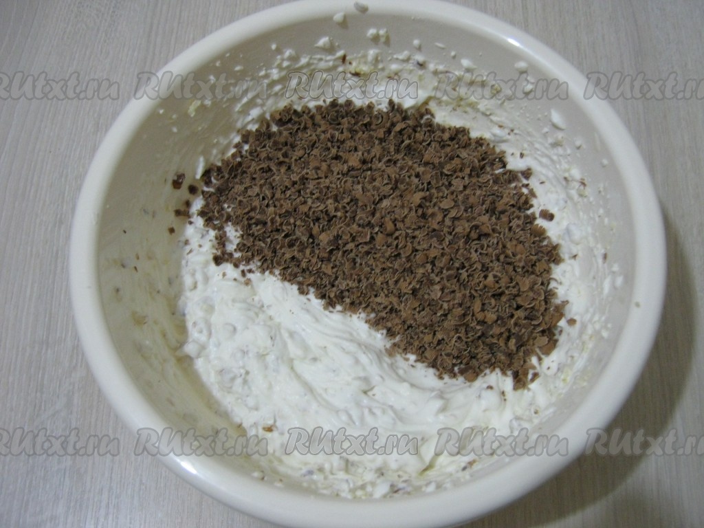 Шоколад натереть на крупной тёрке или порубить (если вы хотите покрупнее).
