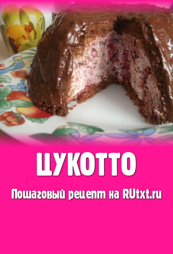 Накрываем цукотто пищевой плёнкой, чтобы не подсох, и ставим в холодильник на 6-8 часов или на ночь. Достаем из холодильника, переворачиваем на блюдо. Сверху можно украсить, посыпать сахарной пудрой.