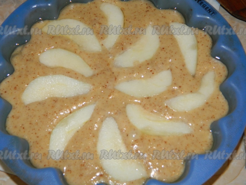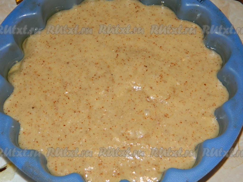 Вылить тесто для пирога в смазанную маслом форму для выпечки.