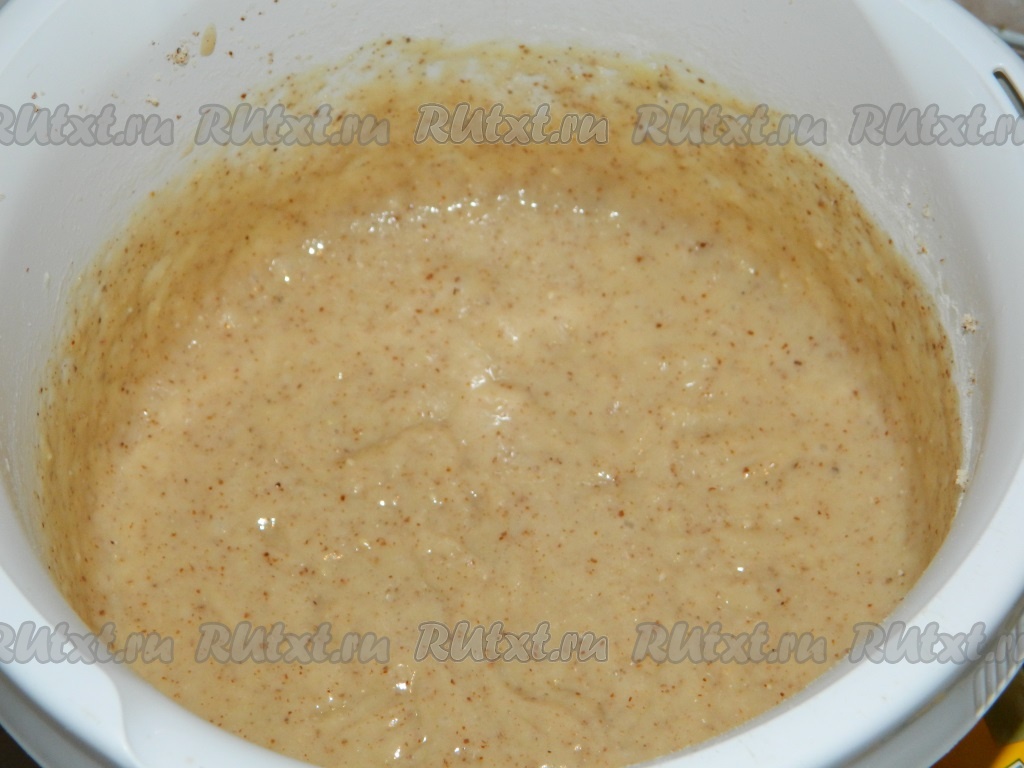 Добавить в массу муку. Хорошо перемешать и вбить сырое яйцо. Затем положить молотый (или рубленный ножом) миндаль. Всыпать соду и, по желанию, добавить молотый имбирь, перемешать тесто, оно получится в меру густым.