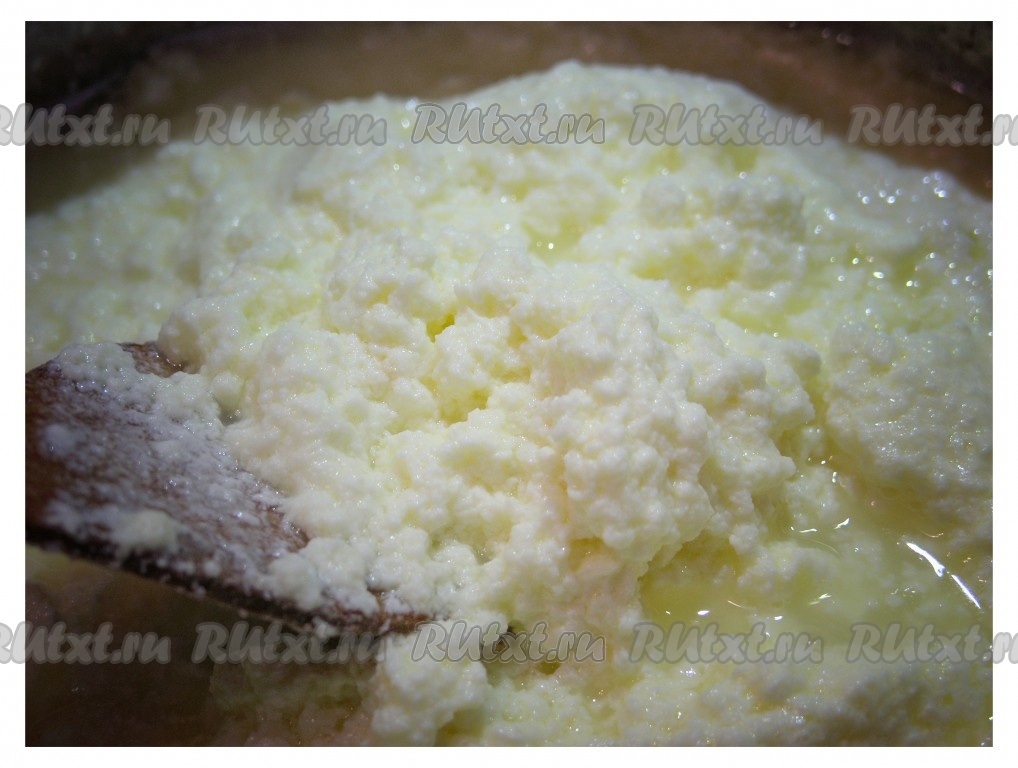Через некоторое время молоко свернется и произойдет расщепление на сыворотку и творог.