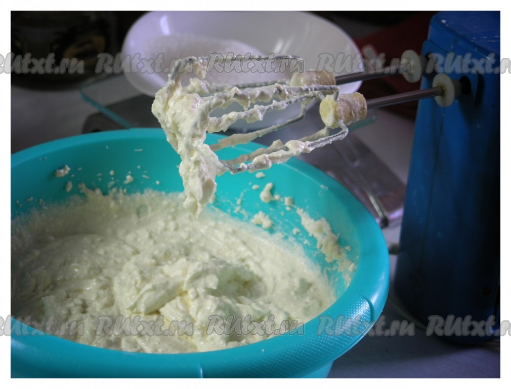 Взбить творожную массу миксером до однородности.
