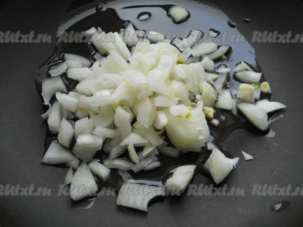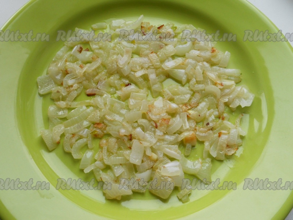Обжарить лук на среднем огне, помешивая, до золотистого цвета.