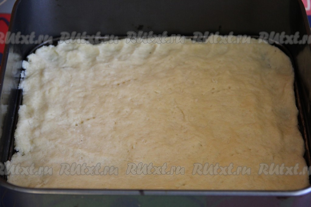 Вначале замесим тесто, для этого нужно в объёмную миску всыпать муку, добавить холодное сливочное масло, нарезанное на кусочки, перетереть руками до получения крошки, всыпать сахарную пудру и соль, перемешать, затем постепенно влить 4 столовые ложки холодной воды, каждый раз хорошо вмешивая воду в тесто. Тесто должно получить достаточно плотным и не липнущим к рукам. Если нужно, добавьте постепенно 1-2 столовых ложки холодной воды, но не забывайте учитывать консистенцию теста. Вымешивать долго тесто не нужно, как только соберётся в шар - прекращайте вымешивать. Замешанное тесто отправить в холодильник минут на 30. Затем распределить тесто по дну формы (у меня форма размером 29х26 сантиметров), наколоть тесто вилкой, чтобы оно не вздувалось при выпечке. Поставить в разогретую духовку и выпекать минут 15-20 при температуре 180 градусов. Затем вынуть из духовки, дать остыть.