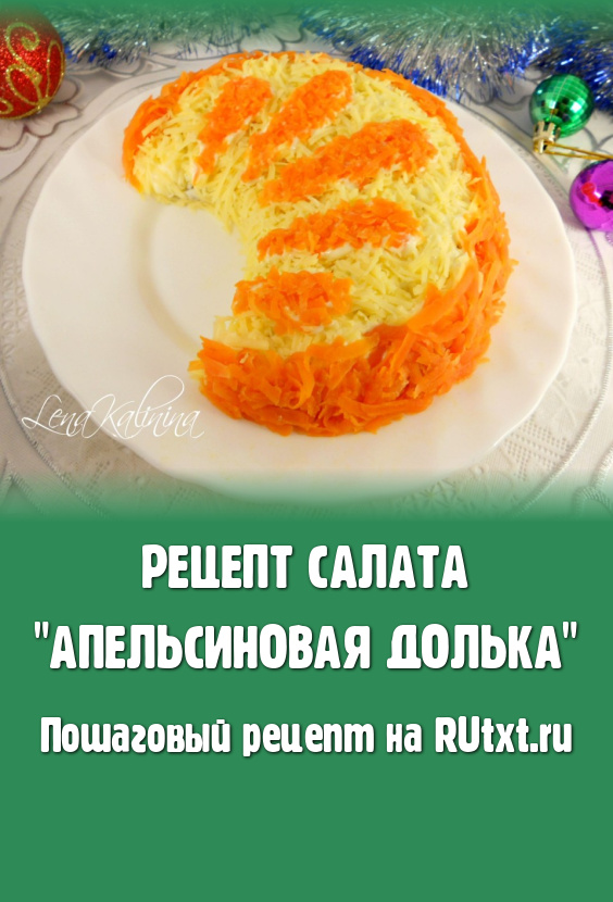 Предлагаю рецепт еще одного яркого, очень вкусного салата "Апельсиновая долька" для Вашего праздничного стола! Готовится из простых продуктов, несложно, а выглядит замечательно. Гостей таким оформлением салата точно можно удивить!