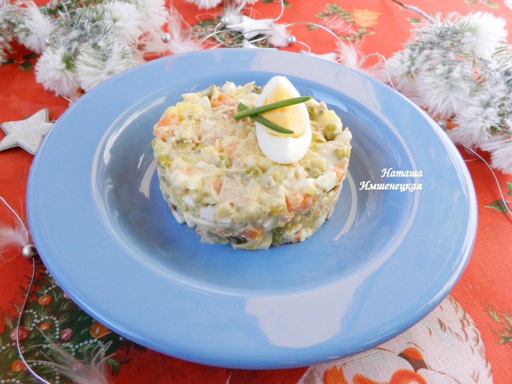 "Оливье" - один из самых популярных салатов, поэтому с каждым годом становится всё больше вариантов этого блюда. В этот раз решила в "Оливье" вместо мяса или колбасы добавить консервированного тунца. Салат приобрёл новый, интересный вкус. Мне очень понравился "Оливье" с консервированной рыбой, поэтому делюсь рецептом!