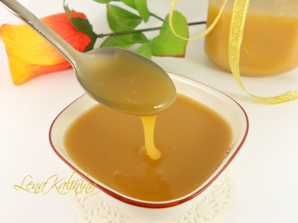 По окончании программы смесь получится жидкой и уменьшится в объёме. Выключить хлебопечку, перелить сгущёнку в пол-литровую баночку, дать полностью остыть.