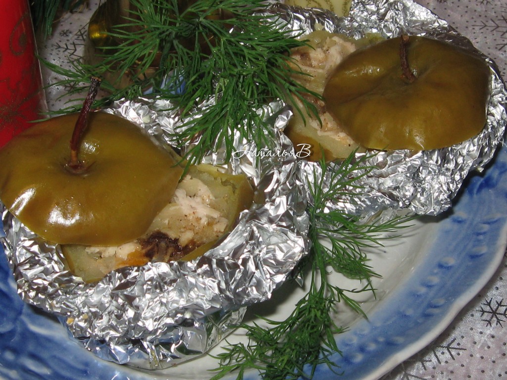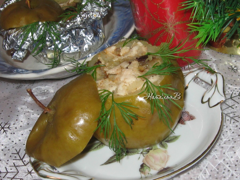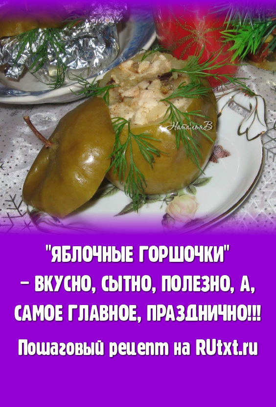Яблочные горшочки заполнить фруктово-куриной начинкой.