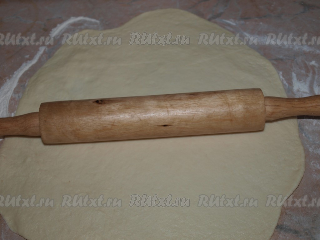 Раскатать 2/3 теста в тонкий пласт размером чуть больше диаметра используемой формы для выпечки. Разогреть духовку до 180 градусов.