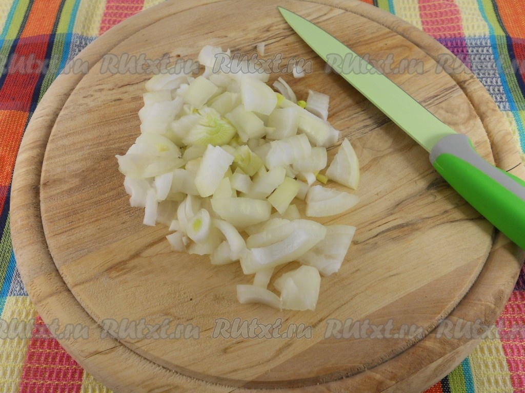 Измельчить репчатый лук.