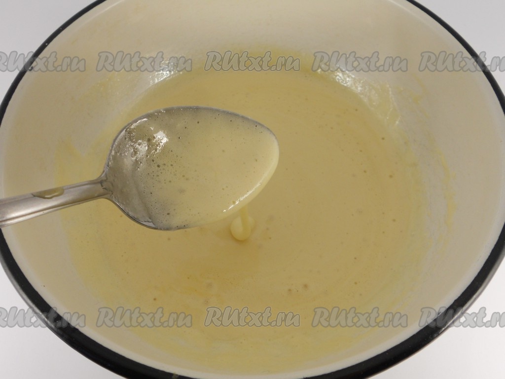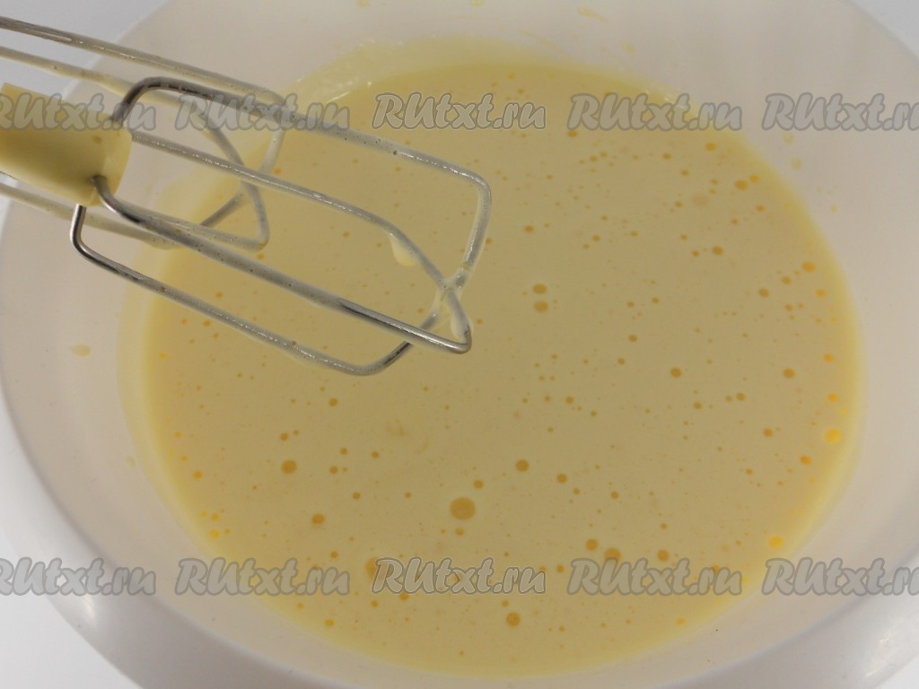 Взбить яйца с сахаром миксером в течение 8-10 минут (яичная смесь должна побелеть и увеличиться в объёме в 2-3 раза).