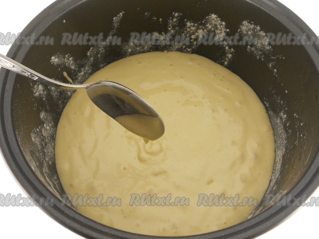 Чашу мультиварки смазать растительным маслом и присыпать мукой. Выложить подготовленное тесто.
