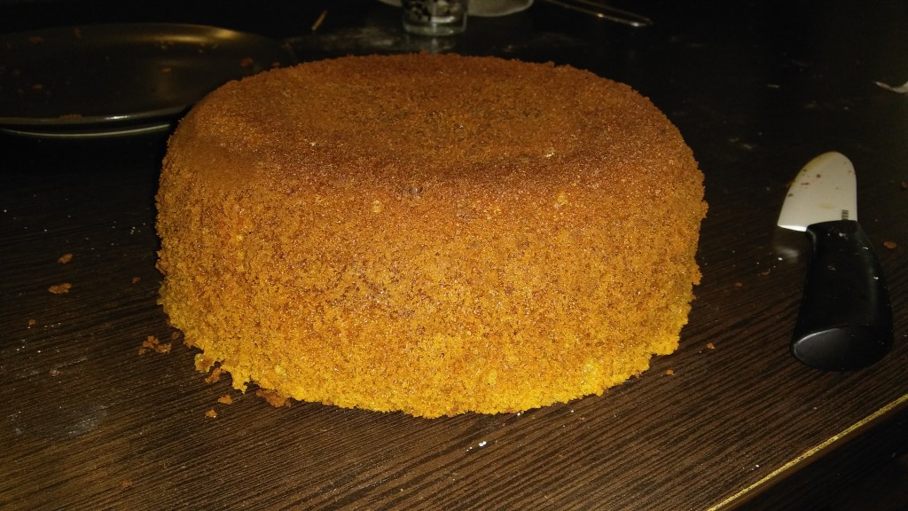 Закрыть крышку мультиварки. Выпекать медовый торт 85 минут (45 + 40) на режиме мультиварки "Выпечка" (у меня этот режим - 45 минут, после окончания выпечки я выставила время ещё на 40 минут).