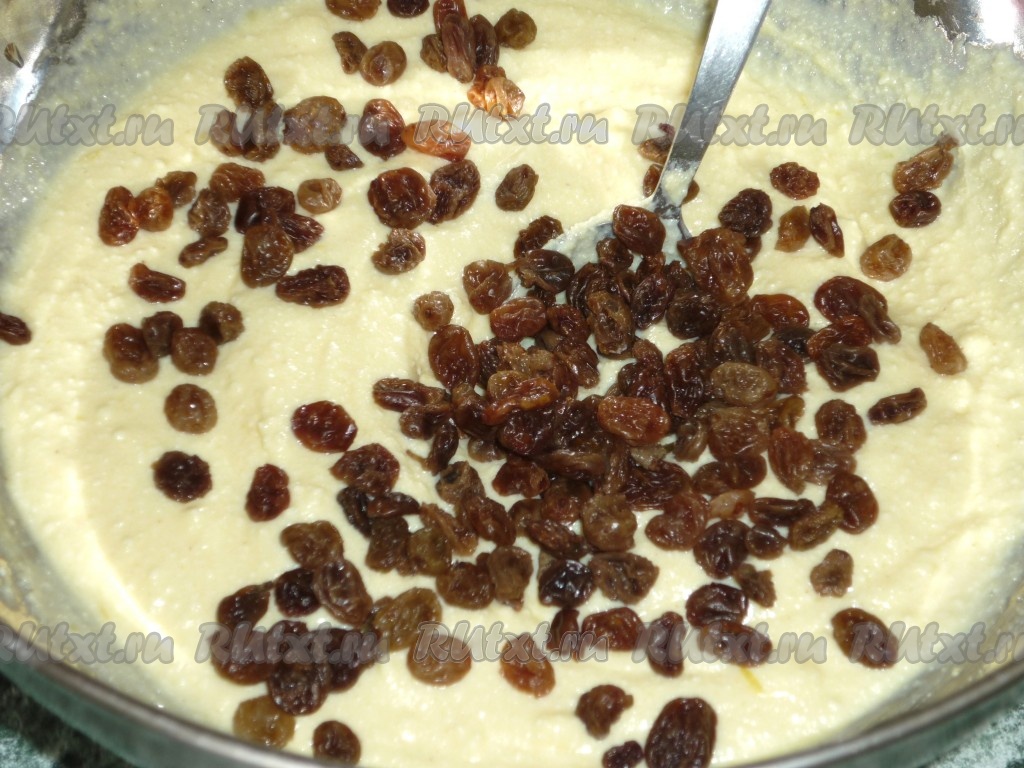 Изюм заранее промыть, залить кипятком на 5 минут, а затем обсушить его, выложив на бумажное (или тканевое) полотенце. Сливочное масло должно быть комнатной температуры, поэтому его нужно достать заранее. Творог пропустить через мясорубку (можно перетереть через сито).