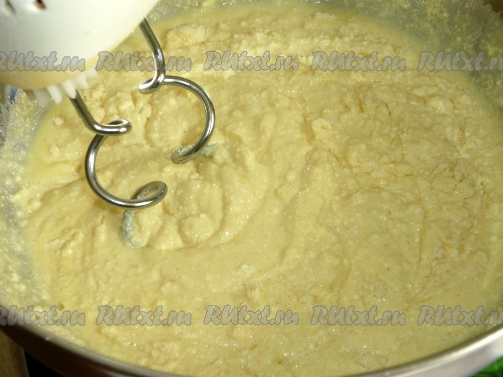 Добавить в творожную массу масло комнатной температуры и манную крупу, перемешать миксером.