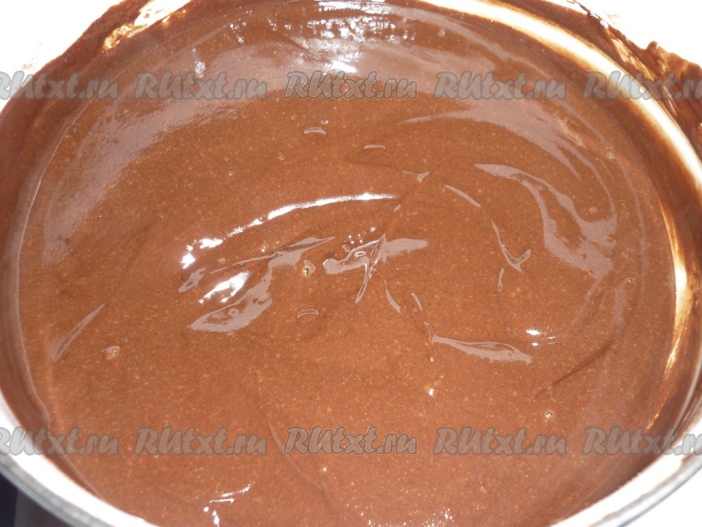 Для приготовления глазури смешать в небольшой кастрюльке сливочное масло, сахар, какао и сметану, поставить на маленький огонь и варить, помешивая, до гладкой консистенции.
