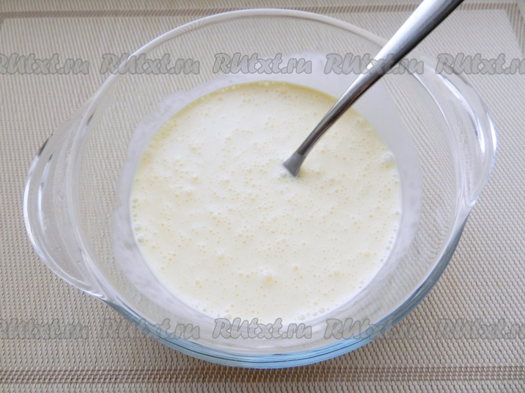 Для заливки яйца слегка взбить (мне хватило двух яиц).
