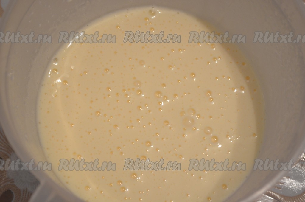 Взбить яйца с сахаром в течение 7 минут миксером на средней скорости. Масса должна побелеть и увеличиться в объёме.