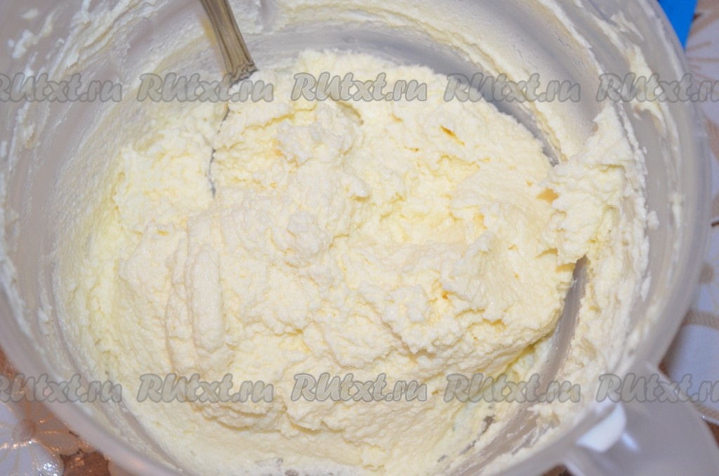 Для приготовления крема нужно взбить миксером сливочное масло комнатной температуры с сахаром до однородности. Затем добавить сметану и перемешать крем ложкой до однородности.