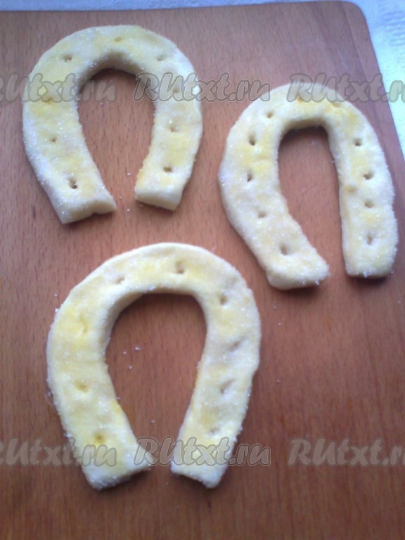Выпекаем печенье "Счастливая подкова" в духовке, разогретой до температуры 180 градусов, 15-20 минут.
