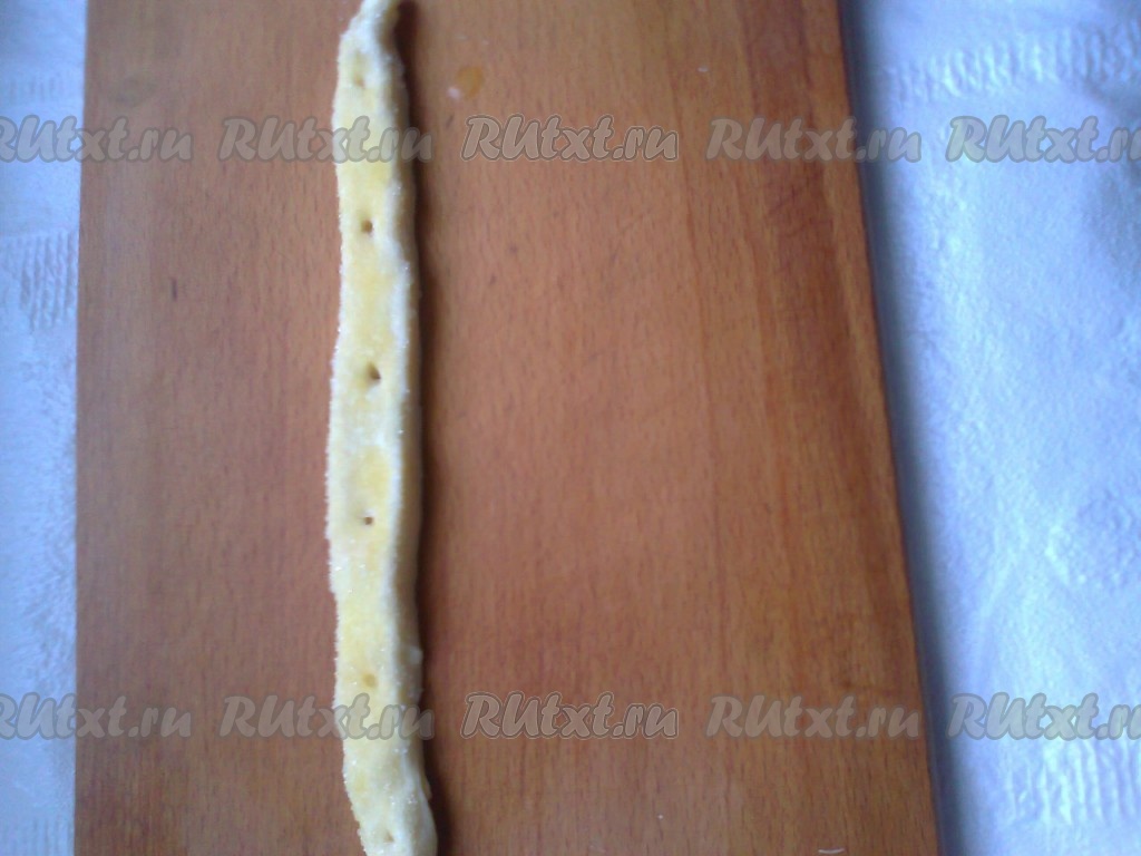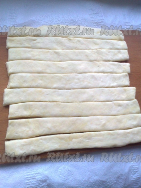Раскатываем тесто в прямоугольник. Нарезаем полоски 2х27 см.