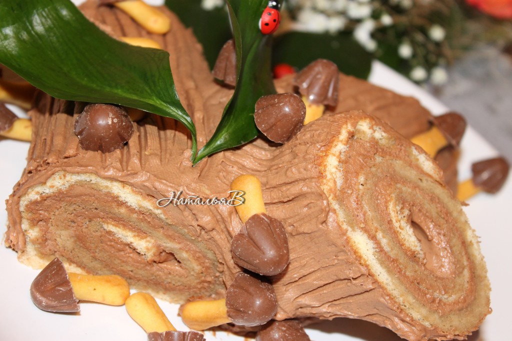 «Рожде́ственское поле́но» (фр. Bûche de Noël) — традиционный рождественский торт в виде полена, распространенный во Франции. По сути, это разновидность рулета. И немного из истории... Обычай выпекания этого торта своими корнями уходит в Средневековье, когда было принято сжигать рождественское полено. А обычай сжигания уходит во времена язычества, когда сжиганием святочного полена отмечался приход зимнего солнцестояния. Я решила украсить свой рождественский праздничный стол вот таким необычным французским десертом - но позаимствовала я только форму, а ингредиенты подобрала сама. Получилось очень вкусно и празднично!