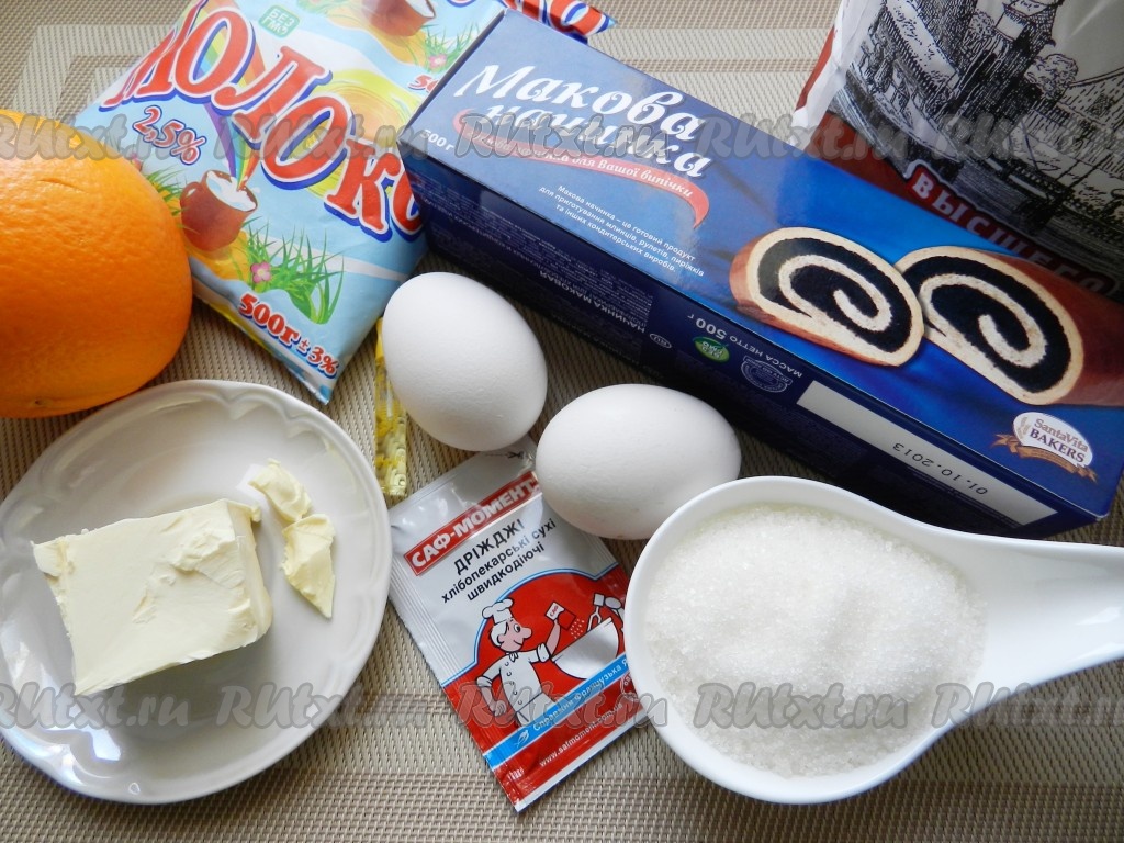 Ингредиенты для приготовления дрожжевого рулета с маком