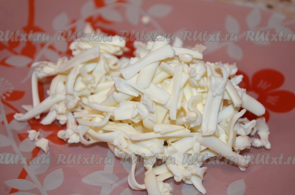 Яйца сварить в течение 9-10 минут с момента закипания воды, затем остудить и очистить. Плавленный сырок можно немного подморозить (подмороженный плавленный сыр натирается легче) и натереть на крупной тёрке. Можно взять и твёрдый сыр, его перед натиранием подмораживать не нужно.