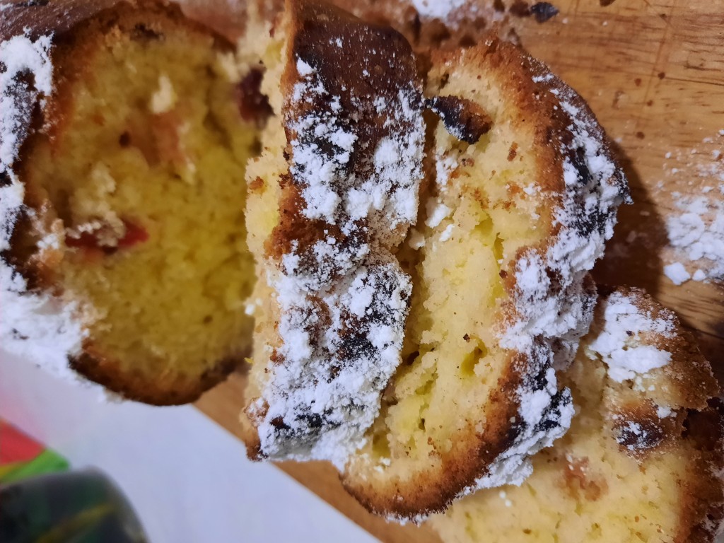 Кекс полить глазурью, украсить кулинарной посыпкой. Вкусный и ароматный кекс на сливках готов.