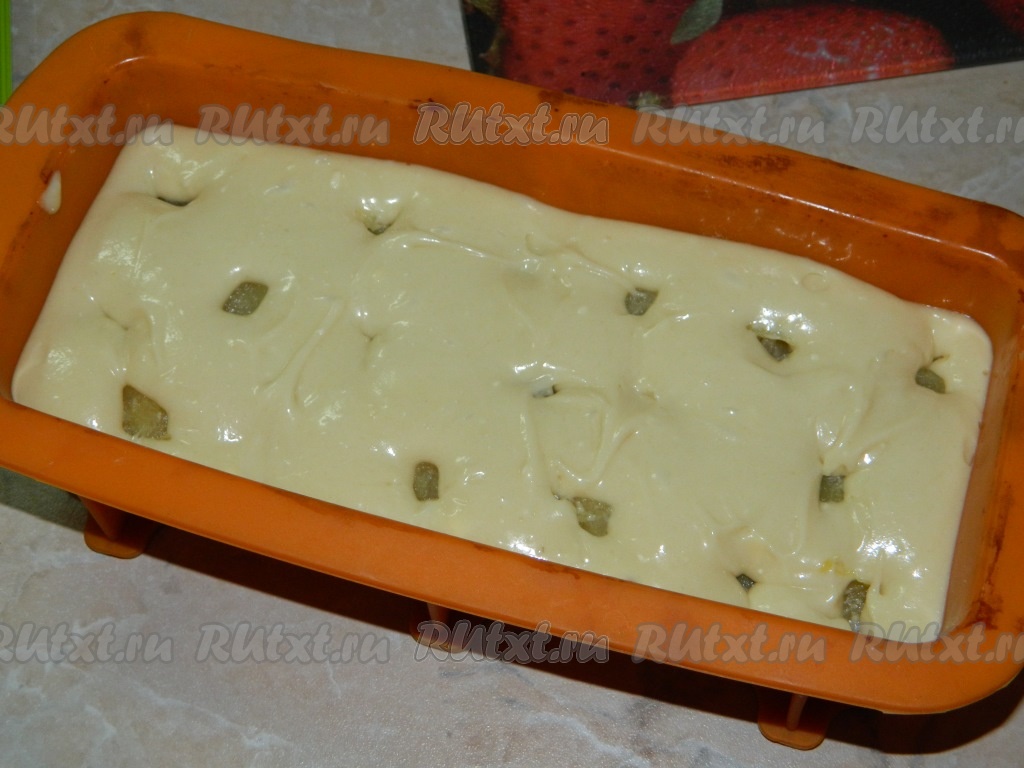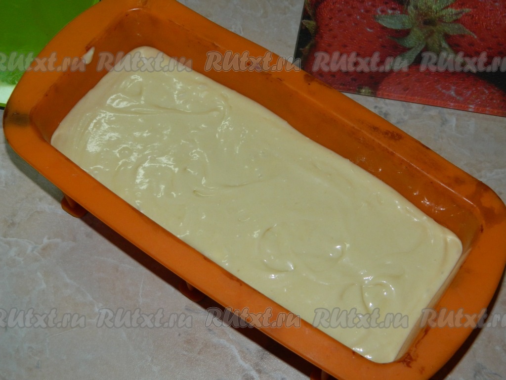 Получившее тесто выливаем в форму для выпечки кексов. У меня силиконовая форма, её дополнительно смазывать маслом не надо. Если у вас железная форма, то обязательно, прежде чем переливать в неё тесто, смажьте её дно и бока растительным маслом.