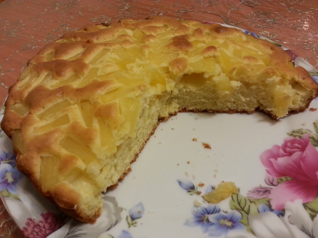 Затем кекс с консервированными ананасами вынимаем из формы, оставляем остывать.