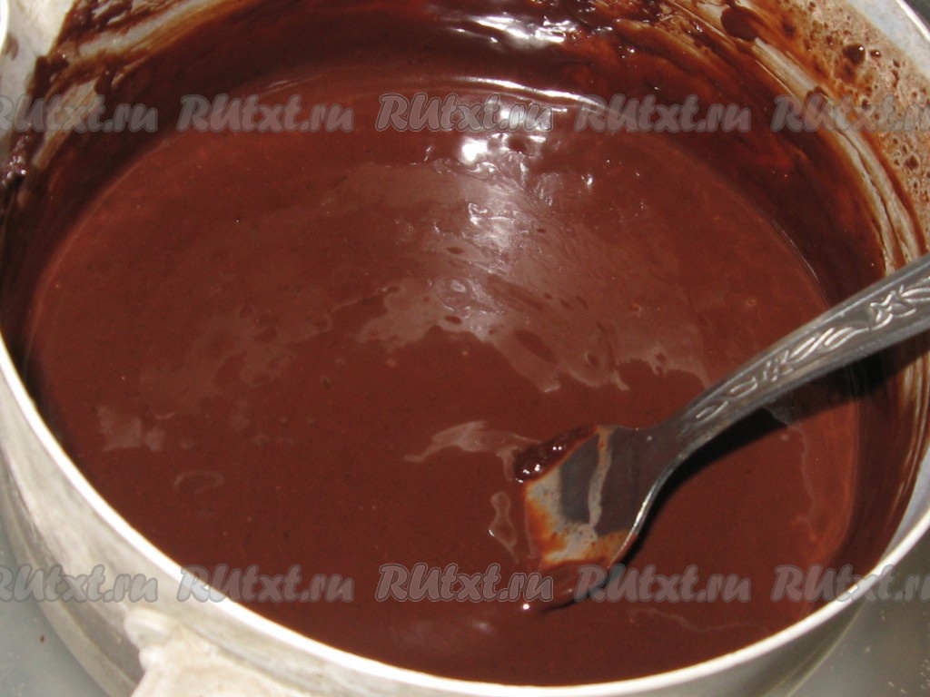 Соединить шоколад, сливки, сахарную пудру и апельсиновый сок - на водяной бане растопить до однородной блестящей массы, снять с огня.