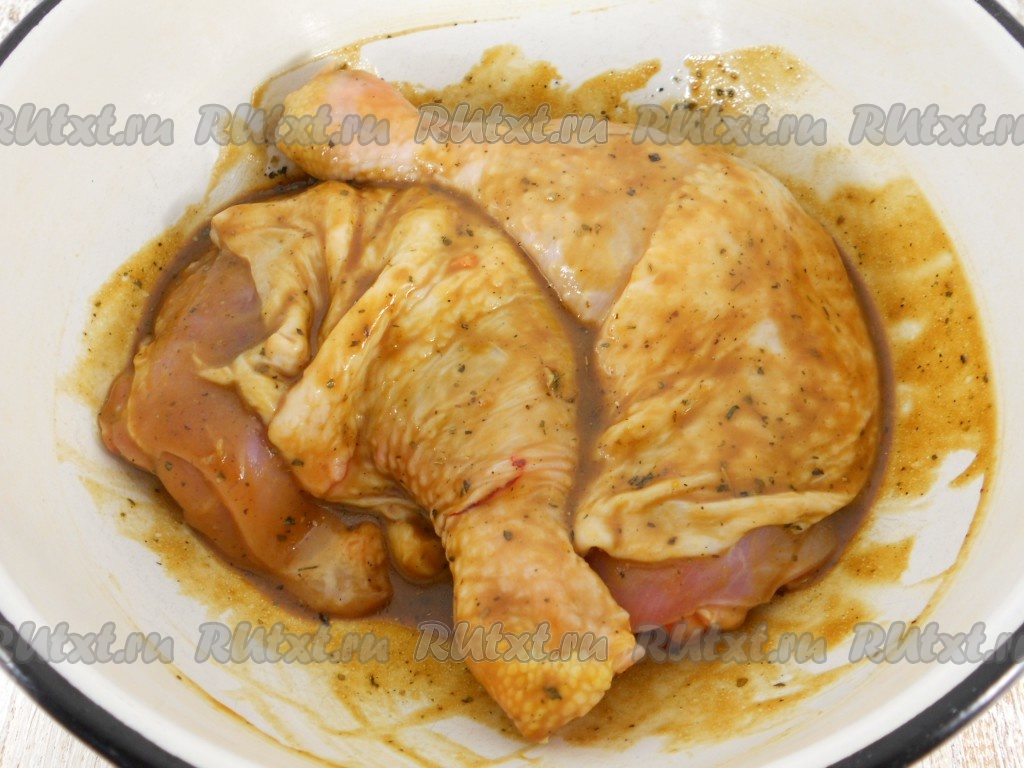 Хорошо смазать этим маринадом куриные ножки. Оставить мариноваться на 2 часа.