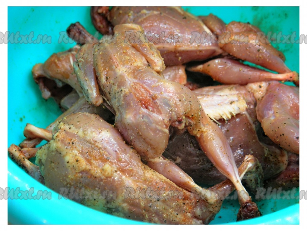 Перепелок вымыть, натереть солью и перцем и оставить на час мариноваться.