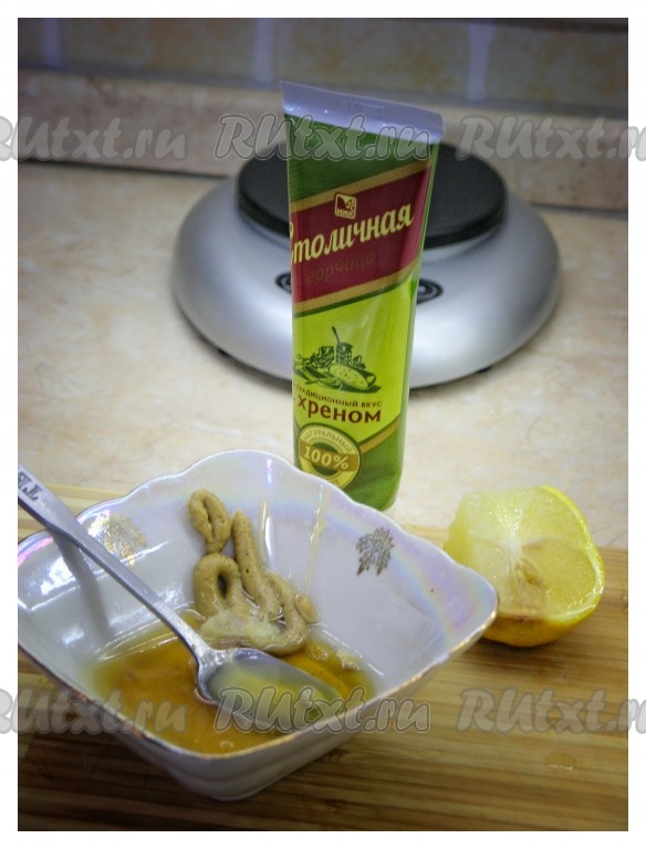 Добавляем столовую ложку горчицы и сок 1/2 лимона.