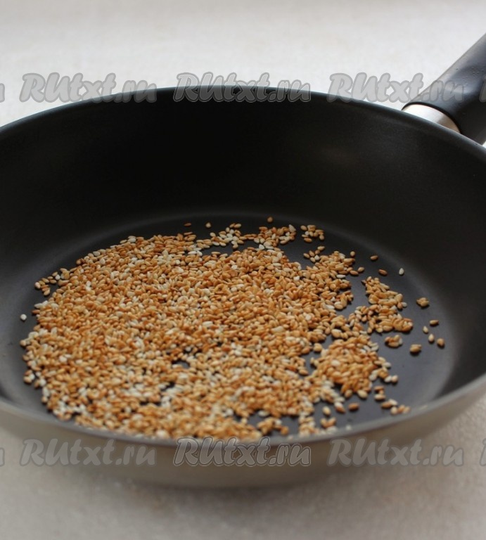 Чтобы раскрыть аромат зернышек кунжута более полно, обжарить его на сухой сковороде в течение 1-2 минут.
