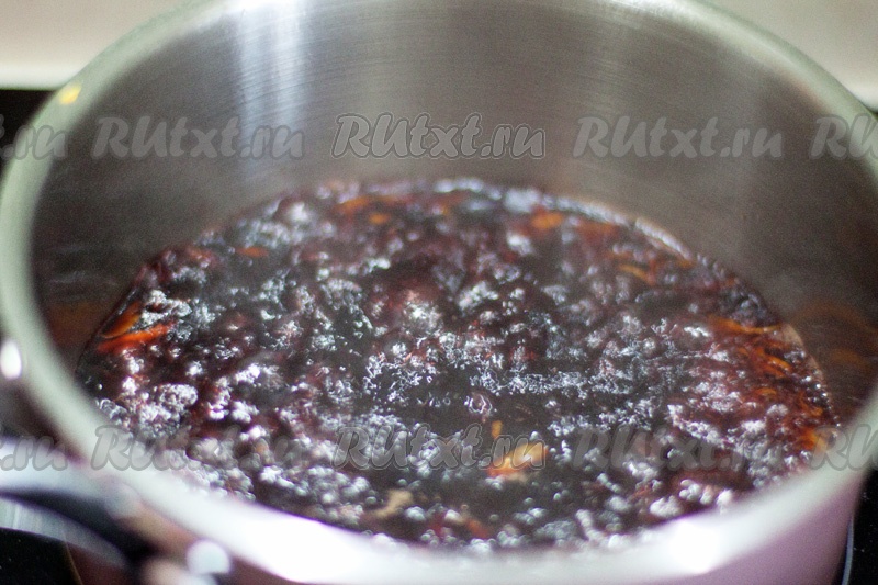 Процедить, удаляя цедру, и снова поставить на плиту.
