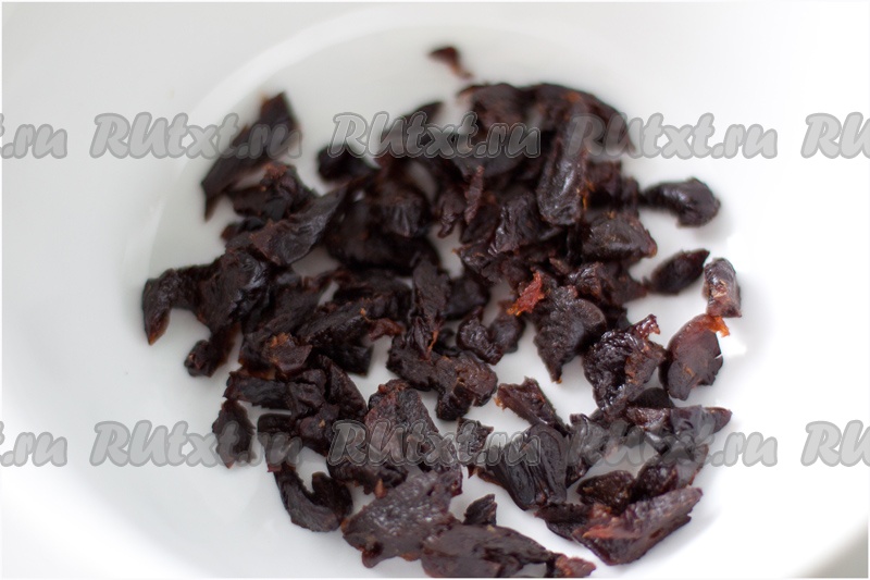 Шоколад поломать или натереть на крупной терке и отправить в сотейник вместе с черносливом. Как только шоколад растопится, снять соус с плиты и дать настояться минут 10-15.