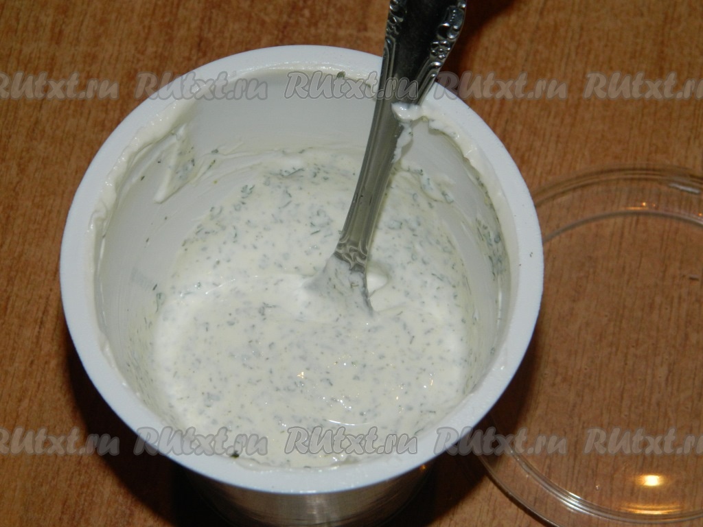 Петрушку мелко порезать, чеснок пропустить через чеснокодавилку и смешать все со сметаной.