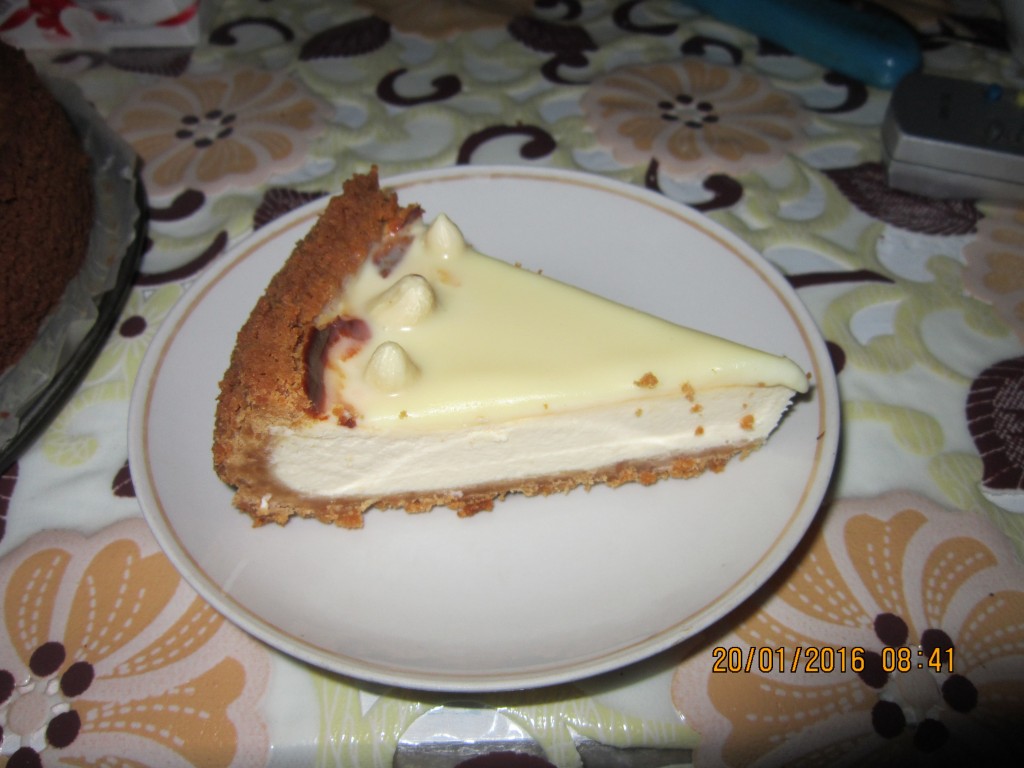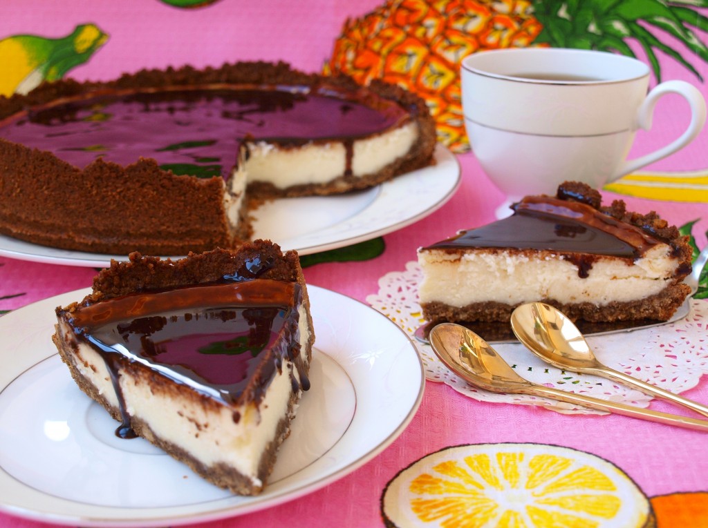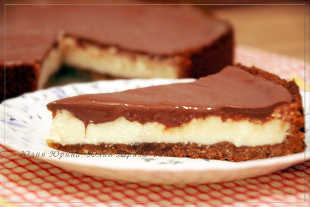 Охлаждённый чизкейк достаём из холодильника и поливаем растопленным горячим шоколадом. Вкусный, нежный чизкейк, приготовленный из творога и сливочного сыра, подаём к столу, радуя близких чудесным десертом.
