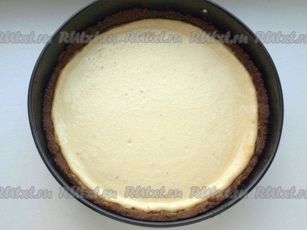 Разогреваем духовку до температуры 180 градусов и выпекаем чизкейк 45 минут. Затем достаём его из духовки, даём остыть и ставим на 3 часа в холодильник.