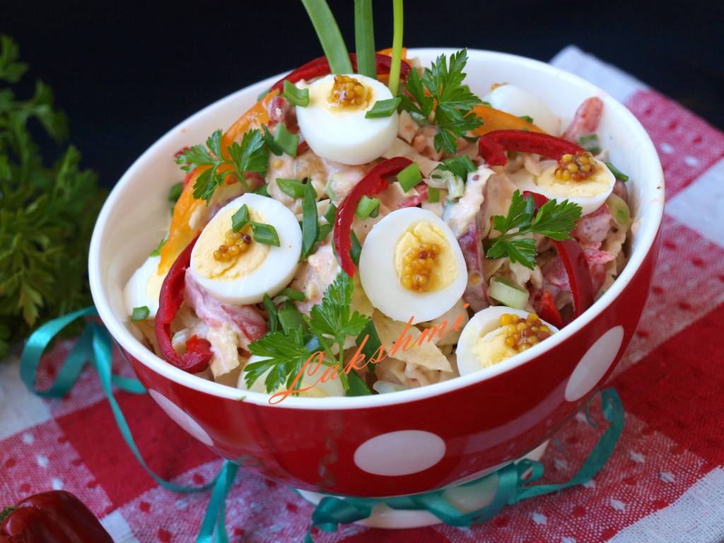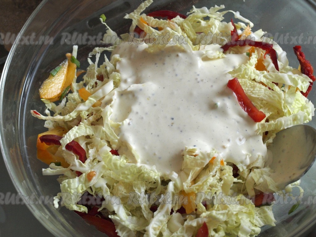 Заправляем салат, если нужно, солим.