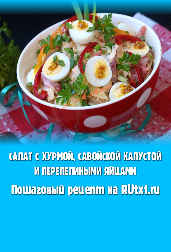 Салат с хурмой и савойской капустой - лёгкий, вкусный, а если дополнить его ещё и перепелиными яйцами, то блюдо получается ещё и достаточно сытным. Такой салатик прекрасно разнообразит дневной рацион.