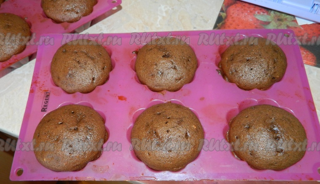 Выпекать шоколадные кексы 25 минут в духовке, разогретой до 180 градусов.