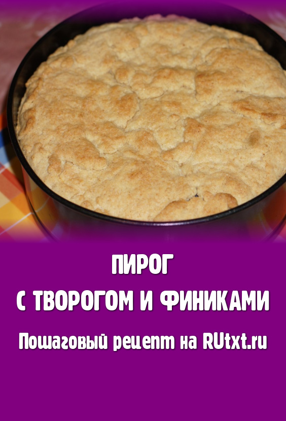 Оставшееся тесто раскатать в круг, выложить тесто поверх начинки. Отправить пирог с творожной начинкой и финиками в предварительно разогретую до 180 градусов духовку.