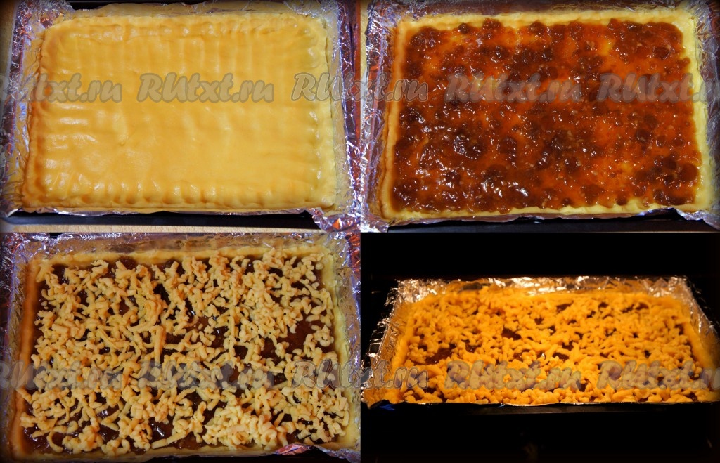 Противень или форму для выпечки застелить пергаментной бумагой (у меня её не оказалось на тот момент, я использовала фольгу), выложить ровным слоем большую часть теста, сформировав небольшие борта. Добавить варенье и распределить его по всему периметру теста. Оставшуюся часть теста натереть на крупной тёрке и распределить поверх варенья. Выпекать венское печенье в разогретой до 180 градусов духовке 20-30 минут (до образования устойчивой румяной корочки).