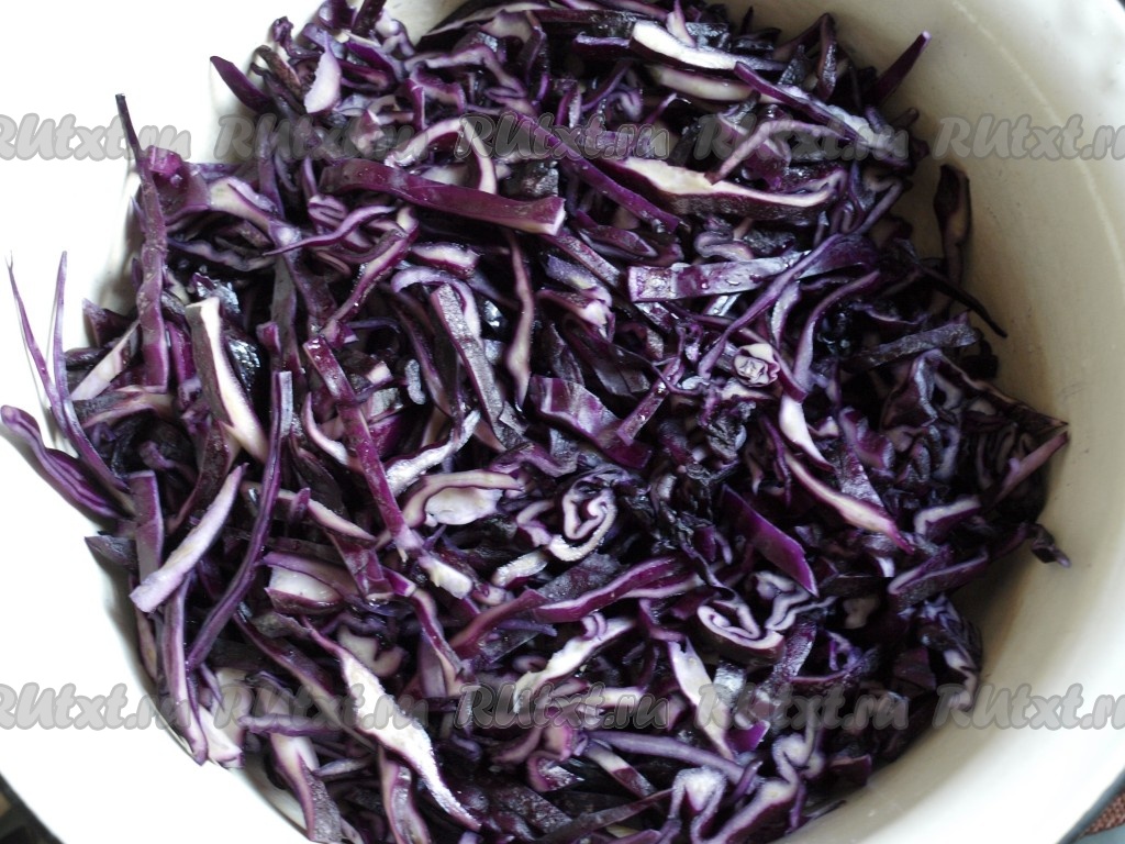Капусту тонко шинкуем и перетираем с солью.
