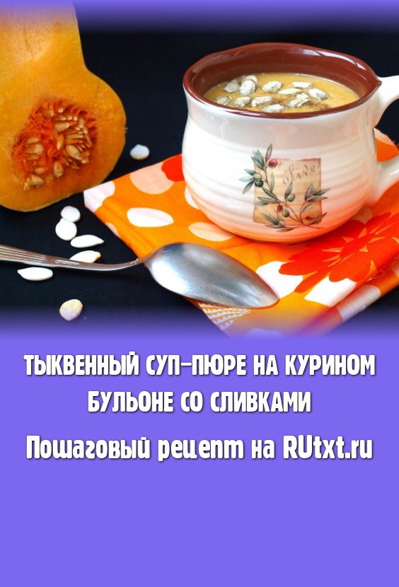 Тыквенный суп-пюре, сваренный на курином бульоне со сливками, - вкусное, полезное и лёгкое блюдо. А если при подаче в тарелку добавить немного тыквенных семечек, то супчик приобретёт ещё и пикантность. Это блюдо обязательно нужно попробовать!