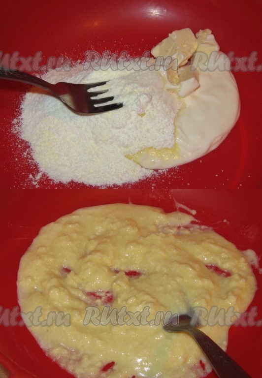 Подготовить продукты. Сливочное масло должно быть комнатной температуры, поэтому достать его из холодильника нужно заранее, чтобы оно успело согреться и стать мягким. Сметану можно купить любой жирности (я взяла жирностью 15%).